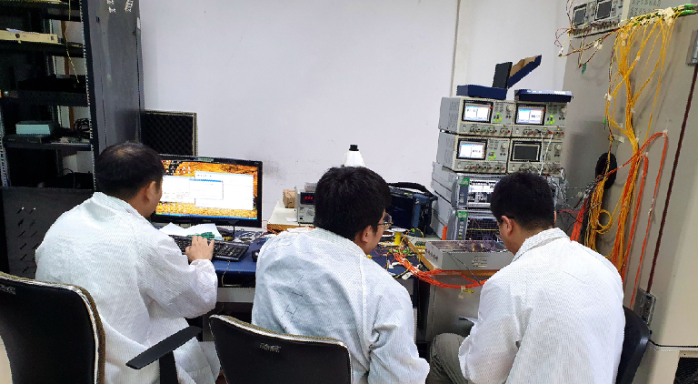 驗(yàn)證與測(cè)試工作也馬不停蹄。產(chǎn)品初樣焊裝完成后,光傳輸部員工絲毫沒有歇息,立刻緊鑼密鼓地投入到了調(diào)試和改進(jìn)工作中。從調(diào)試的第一天開始,相關(guān)負(fù)責(zé)人就從未離開第一線,時(shí)時(shí)刻刻都在指揮協(xié)調(diào),甚至還與驗(yàn)證與測(cè)試員工一起設(shè)置溫箱、記錄數(shù)據(jù)、測(cè)試流程、改進(jìn)軟件,焊線、接線、調(diào)儀器……他們齊心協(xié)力堅(jiān)守崗位,周末無休,終于,在大家的共同努力下,國產(chǎn)化光轉(zhuǎn)換組件通過一次次評(píng)審,開始為用戶供貨!