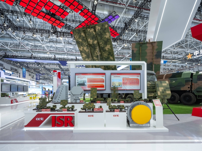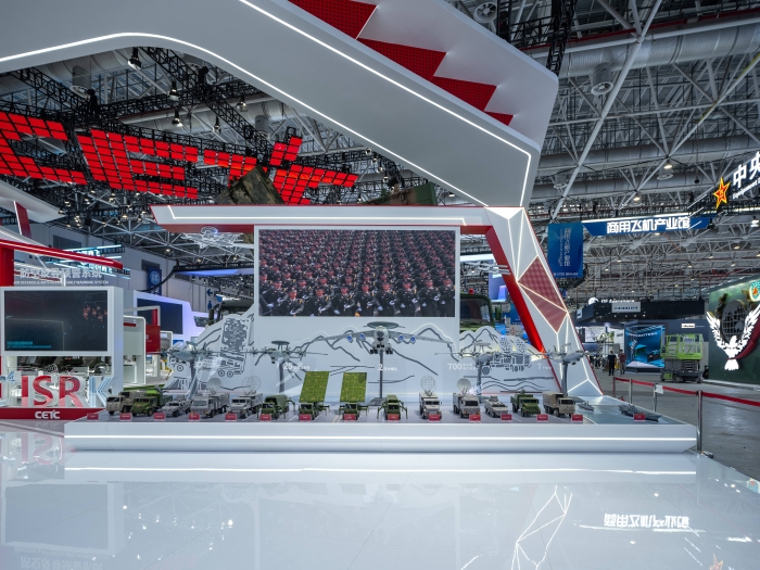 本屆展會,中國電科以“擁抱體系制勝時代”為主題,打造了C4ISRK、電子基礎、數字經濟、新域新質等四大展區。攜旗下37家二級單位,43家研究院所,室內外展示面積達1萬平米,共展出36部大型實裝,480項產品參展,其中73項產品首次亮相。體系化展示了整體解決方案和譜系化、智能化裝備,彰顯了軍工電子在武器裝備機械化、信息化、智能化融合發展中的作用。